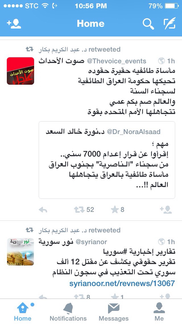 Dr. Abdul Karim Bikar dan Dr. Nora al-Saad menulis dalam twit nya tentang Tragedy kemanusian dan sektarian yang menimpa umat islam ahlussunah Irak.
