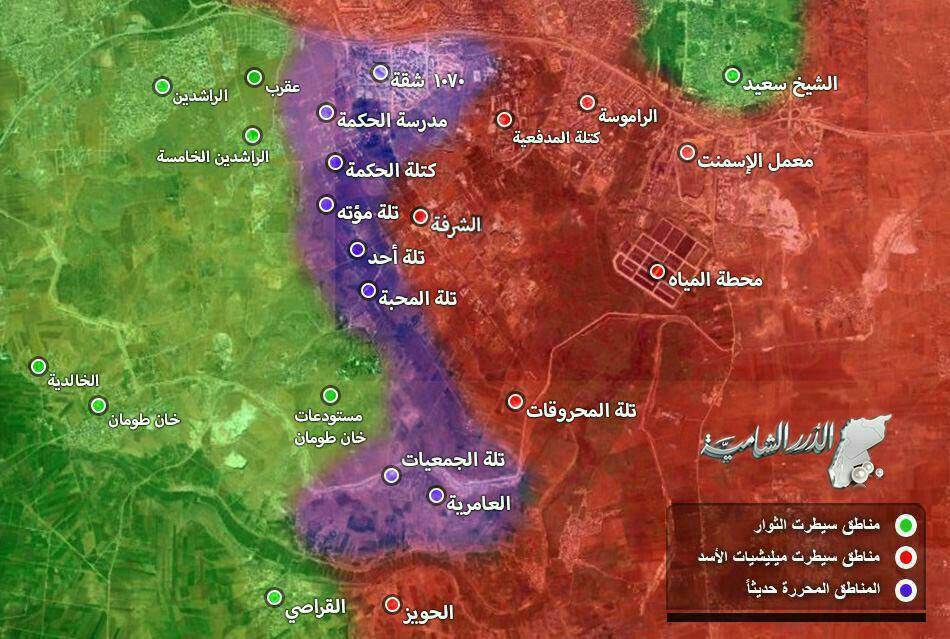 Maka dalam dua hari ini, pejuang telah berhasil maju membebaskan daerah baru , mereka maju lebih dari 20 kilo, hingga tinggal 3 kilo menuju Aleppo yang terisolasi.