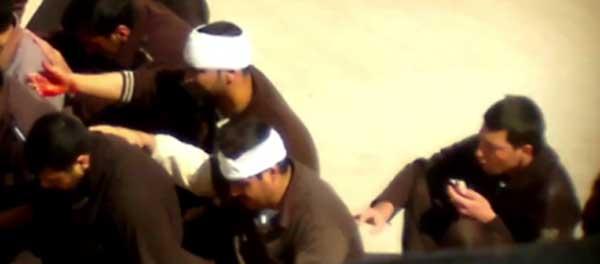 2. Ada sejumlah tahanan dibalut kepalanya, sepertinya mereka telah mengalami cedera serupa setelah dipukul di kepala, dan tangan salah seorang mereka berlumuran darah (mengeluarkan darah)