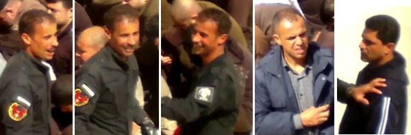 1. Ada sejumlah tentara yang di tangannya membawa alat pemukul untuk memukuli para tahanan tanpa pandang bulu dan sangat menyakitkan sebagai bentuk kebijakan penyiksaan kolektif, dan menggiring mereka seperti kawanan domba!